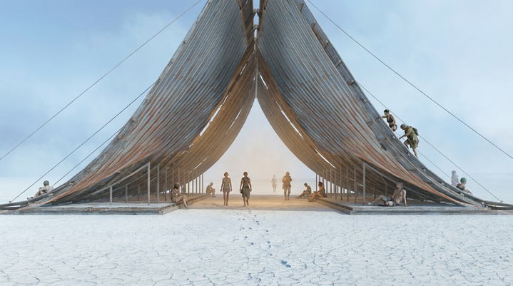 The work is design to be legible at two scales at once,a monumental reading from afar and a tactile, close-up experience where joints, seams, bracing, and surface become the narrative. Burning Man allows the project to be tested as a structure, a corridor, and a performance of assembly, then returned to the longer arc of Cyrus as documentation, s short film, and future reconfigurations.